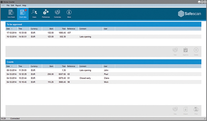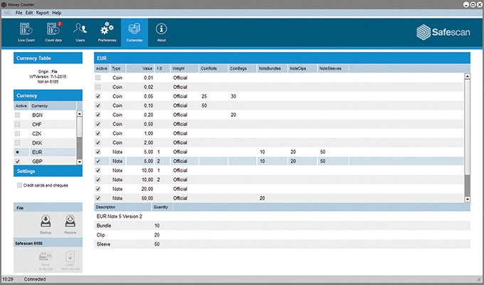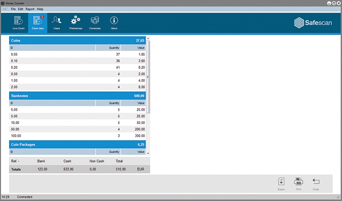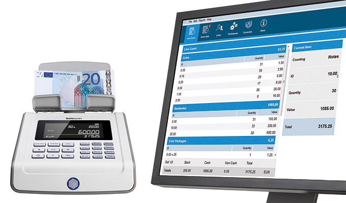 The unique "Live Count" feature enables you to view your count result in real-time in the software, as the count result of each denomination is immediately sent from the Safescan 6185 to the software.