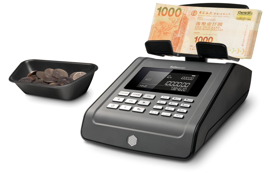 In short, integration. A money scale is a compact device that can handle all your cash counting. Banknote counters can’t count coins; coin counters can’t count banknotes. Banknote counters don’t let you enter manual values for checks and credit cards; coin counters don’t link up to cash management software. But money scales like the Safescan 6185 can do it all: count coins, banknotes, vouchers, coupons, tokens and chips; tag data with a time, date and reference number; accept manual credit-card and check values; and export all your data to cash-handling software. They are the ultimate all-in-one integrated cash counter.