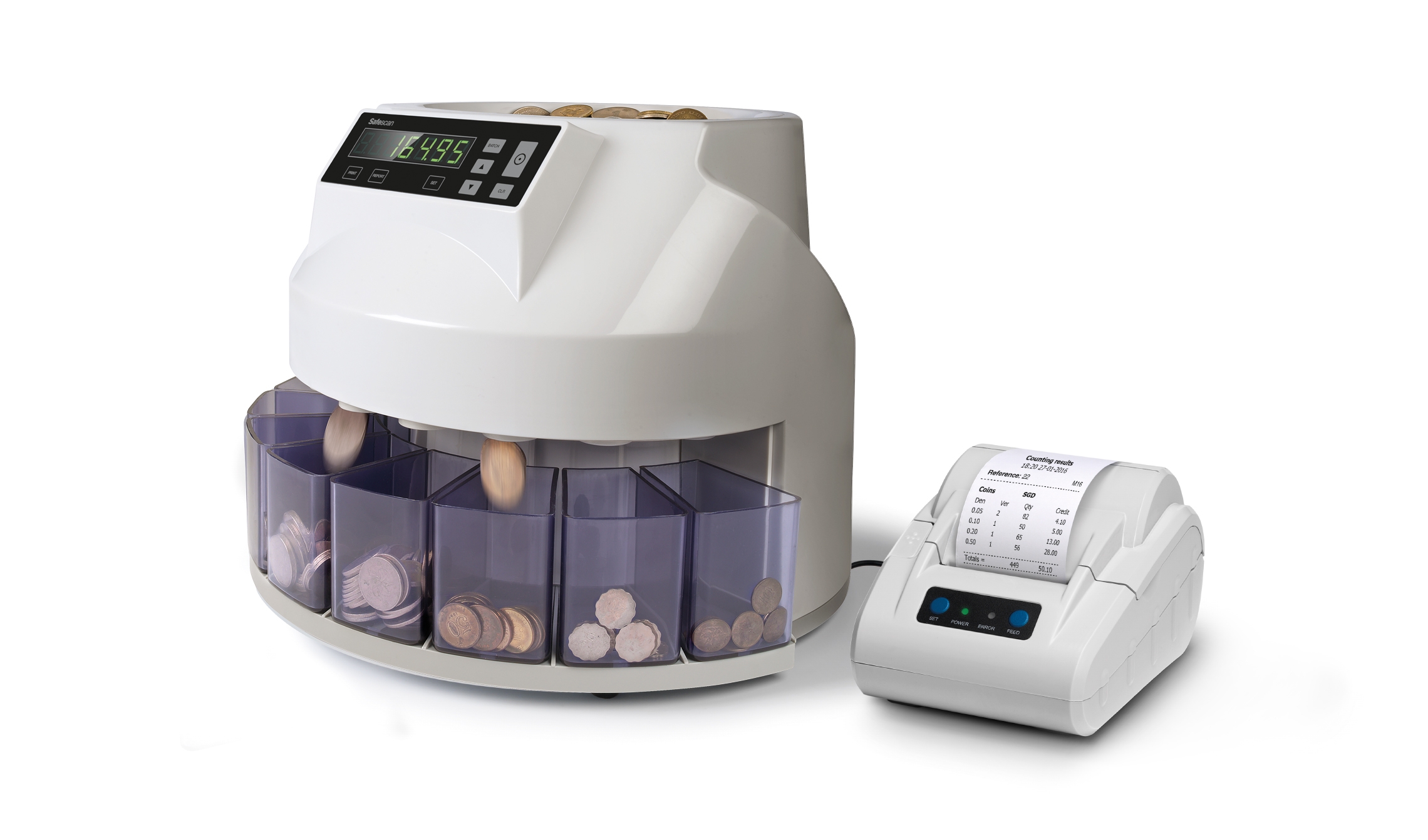To prevent messy overflow, the 1250 will automatically pause when one of its coin cups is full; simply empty the cup and press start to resume counting.
