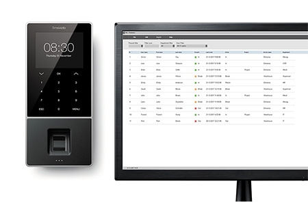 Install TimeMoto terminals at all the entrances to your building, and the PC software will manage them all, showing you precisely who clocked in at which terminal.