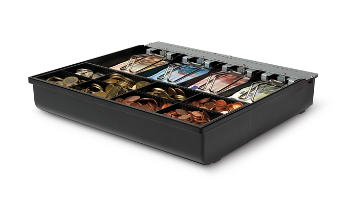 Adjustable banknote dividers let you customize the 3540T tray for exactly the bills you want to store, and 8 adjustable coin cups keep all your small change and tokens neatly sorted in one convenient place. A spacious media slot provides plenty of room to store coupons, credit-card slips and other non-cash transaction media.