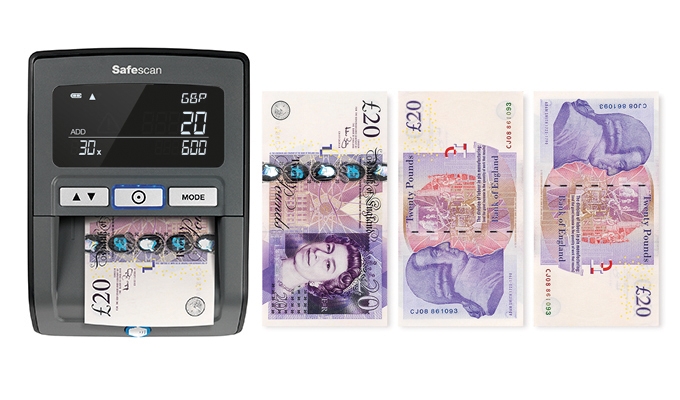 The Safescan 155i uses the latest counterfeit detection technology to scrutinize six advanced security features built into today’s currencies: infrared ink, magnetic ink, metallic thread, size, thickness, and watermark. This technology is so reliable it even detects double notes and half notes. In just half a second, you’ll know with 100% certainty whether the banknote in your hand is genuine or counterfeit—and your customer will know, too, eliminating unnecessary discussion.