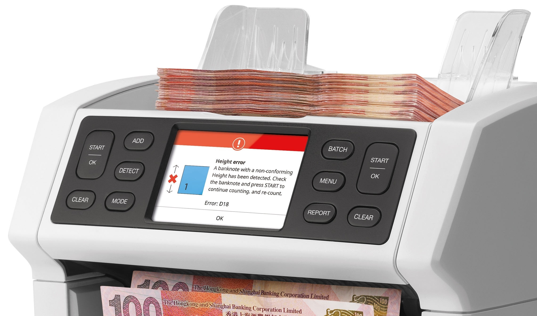 - 大容量喂钞台允许不断地添加钞票作快速点算