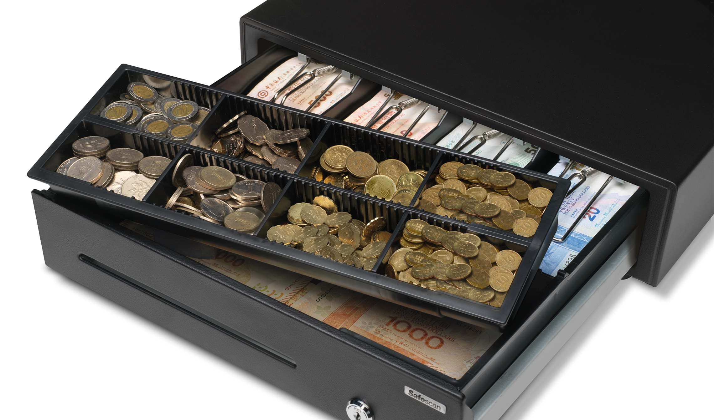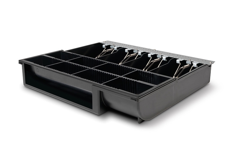 可调动纸币格让您可以自定义您的 4141T1 想如何存放的钞票,另外八个可调动硬币格将您的所有零钱及代币整齐地存放在一个方便的地方。宽阔的分间槽提供充足的空间来保存待用券,信用卡收据和其他非现金交易项目。