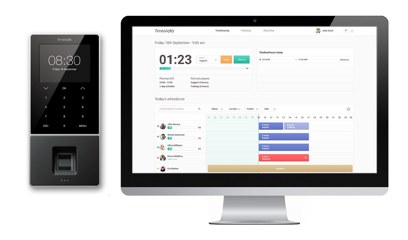 将您的TimeMoto装置与TimeMoto Cloud云端程式结合使用获得最大的灵活性。我们的智能云端解决方案在一个简单的应用程序中为您提供了完善的视野角度及操作技术,协助阁下更有效率地进行时间安排及管理。操作简单,可以随时随地管理来自TimeMoto装置的所有考勤数据,编辑和报告实时情况。为您的团队创建详细的时间表,并管理他们的加班时间,缺勤,休假请求等。