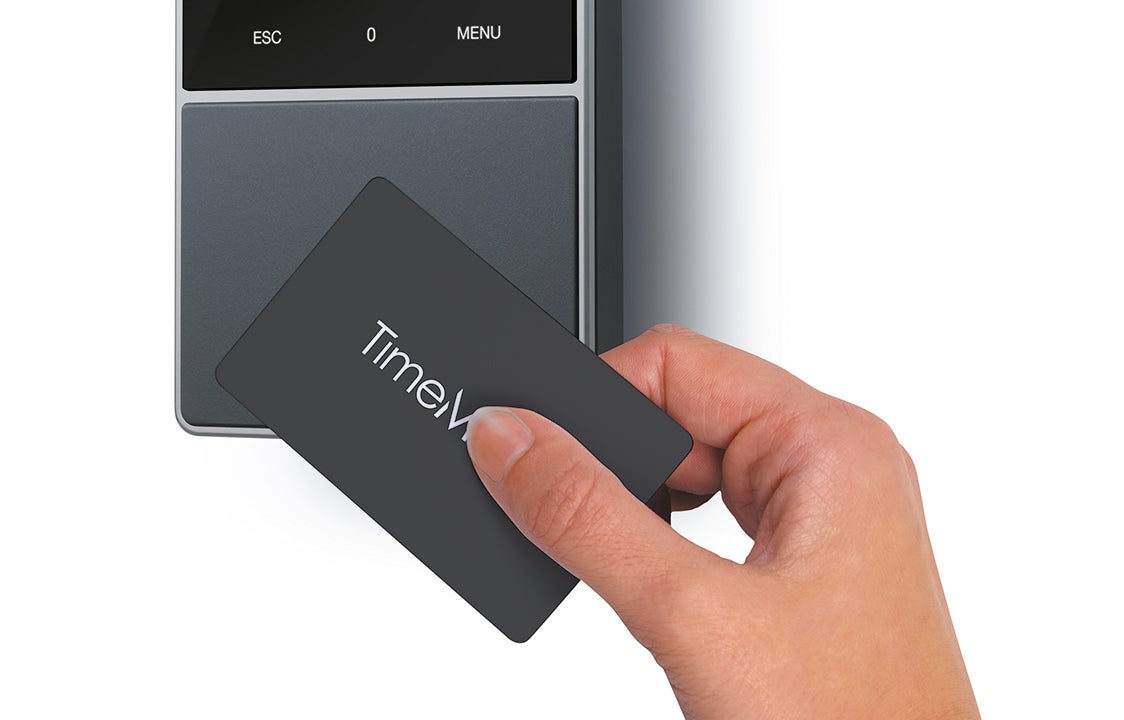 在TimeMoto 的考勤系統中,RFID 閱讀器是設置在考勤裝置內,而標籤是一張標準的信用卡大小的感應卡或小匙扣。每張感應卡或匙扣都是唯一的,識別一位特定員工。您只需把您的標籤貼近裝置;您甚至不用把它從盒中取出。閱讀器便能識別到閣下,並記錄時間,一秒鐘後,您就大功告成。