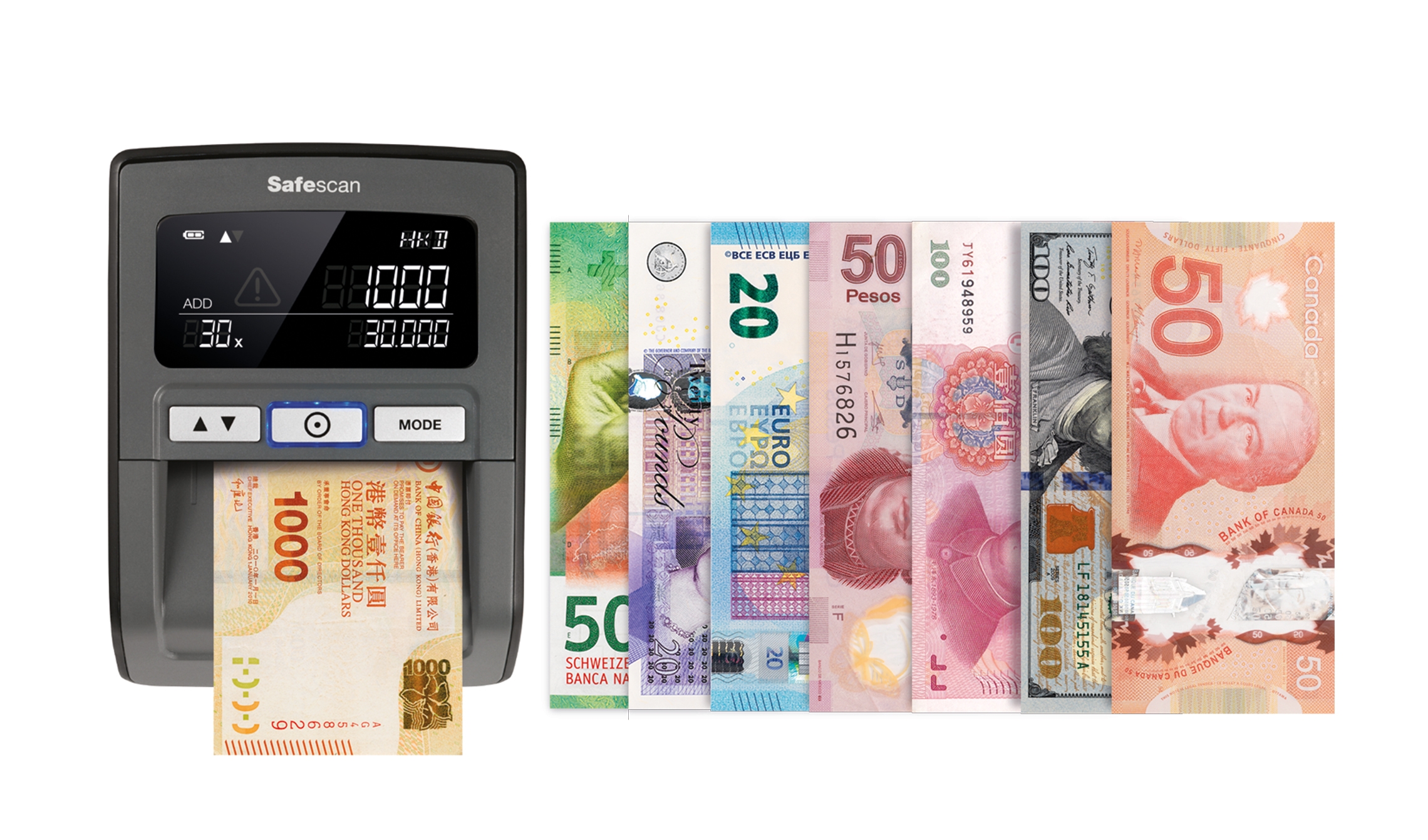 Safescan 185-S 採用了最新的防偽檢測技術審查七種先進的鑑偽功能:紅外線,磁性油墨,金屬線,尺寸檢測,寬、闊度檢測,以及浮水印。該技術是如此可靠,它甚至能夠檢測重疊紙幣,半張紙幣,甚至superdollar(超級美鈔),有史以來最複雜的偽鈔。在短短半秒,您就能百分百確定手中的鈔票的真偽,而您的客戶亦能同時知道,消除了不必要的討論。