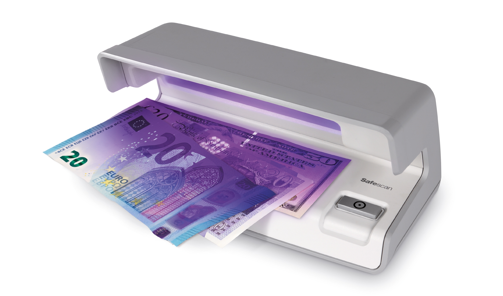 現時很多的流動紙幣都已經具備了紫外線的防偽功能,並且一定要在某特定頻率的紫外線照射下才顯示出來。Safescan 50 是專門設計用幫助您驗證這些功能和識別潛在的偽鈔。